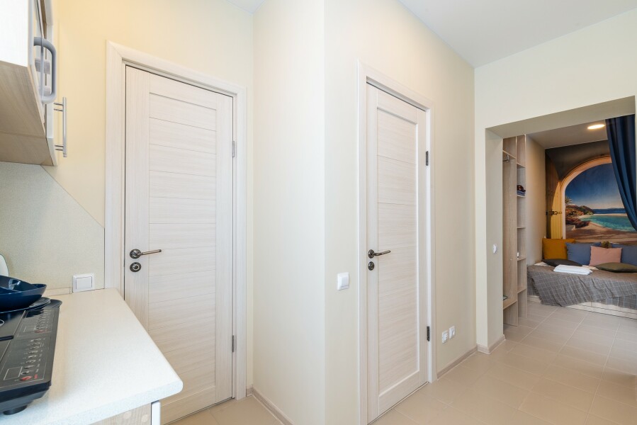 Мини апарт-отель в центре города БЕЗ стойки регистрации. Доступ в отель осуществляется бесконтактно с помощью кодовых замков. Двухкомнатный номер с двумя двуспальными кроватями. Все номера в отеле БЕЗ ОКОН с имитационными подсветками и оснащены современной системой вентилирования для комфортного проживания. Размещение животных в отеле- запрещено! В отеле оборудована общая прачечная с круглосуточным доступом, где гости могут воспользоваться стиральной и сушильной машинами, гладильными принадлежностями. В доме есть продуктовый мини-маркет и кафе. До центральной площади можно спуститься за 10-15 минут пешком. Залоговый депозит при заезде в номер 3000 руб., возвращается в день выезда.