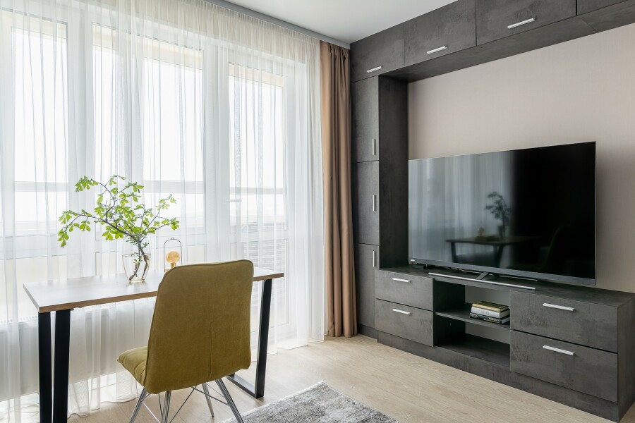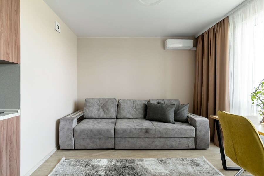 Светлая, теплая и уютная квартира-студия в новом ЖК Изумрудный в районе Второй речки. Квартира расположена на 21 этаже, откуда открывается прекрасный вид на море, город и окружающую жилой комплекс природу. В квартире и доме установлена противопожарная сигнализация. Удобная транспортная развязка, благодаря которой можно добраться как на остров Русский, так и в центр города. Автобусная остановка маршрутного автобуса №91 расположена в 100 метрах от дома. В шаговой доступности детская площадка, продовольственные супермаркеты, аптека, магазин бытовых товаров. Бесплатная парковка и платная крытая парковка на выбор возле дома. Квартира полностью укомплектована посудой и кухонными приборами, всегда есть средства гигиены. Гостям предоставляется чистая квартира для заезда с плановой уборкой в день выезда, которая входит в тариф при бронировании. Проживание животных запрещено! БЕСКОНТАКНОЕ ЗАСЕЛЕНИЕ Залоговый депозит при заезде в номер 3000 руб., возвращается в день выезда.